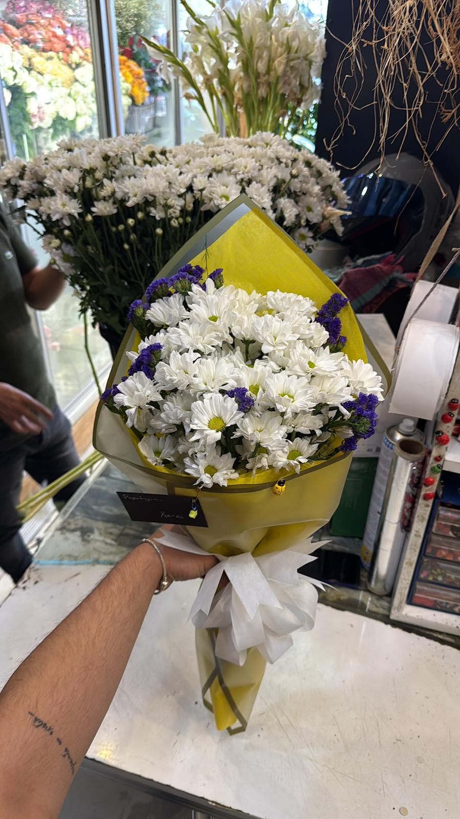 LİLYUM BEYAZ PAPATYA VE KIRMIZI GÜL BUKETİ